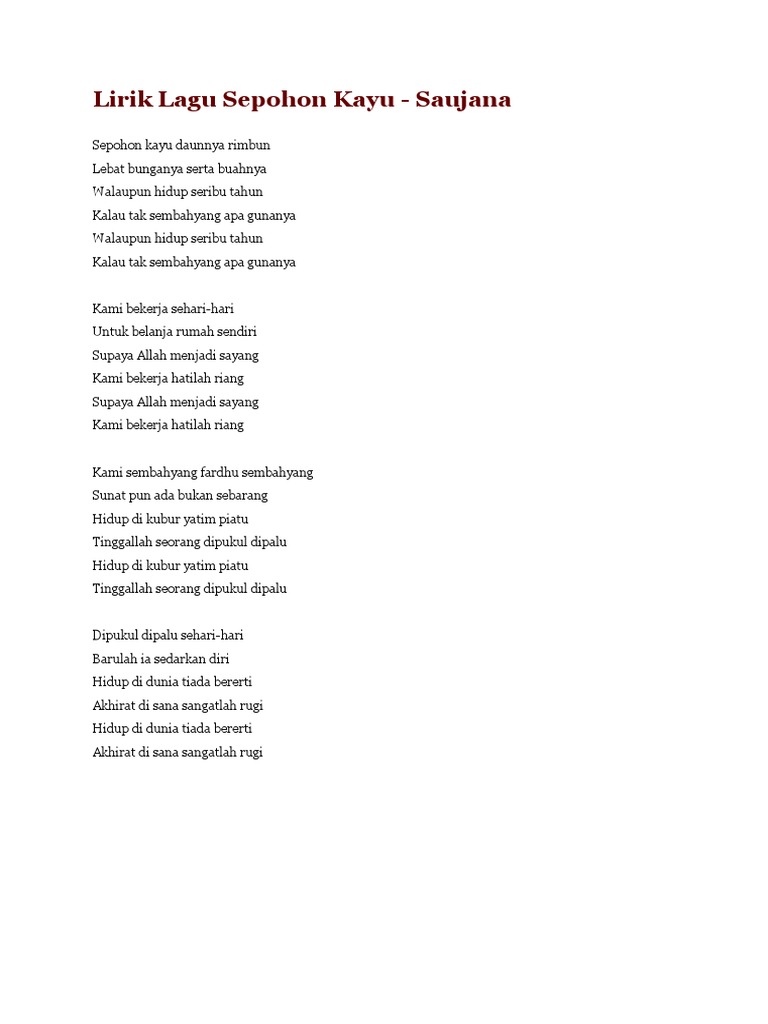 Lagu Nasyid Sepohon Kayu Lirik By Da_Michaela190 27 Apr, 2022 Post a Comment Lirik Lagu Sepohon Kayu Pdf Lirik Lagu Sepohon Kayu Pdf Saujana Sepohon Kayu Youtube Lirik Lagu Sepohon Kayu Ustad Jefri Al Buchori Diadona Id Share No comments for "Lagu Nasyid Sepohon Kayu Lirik"